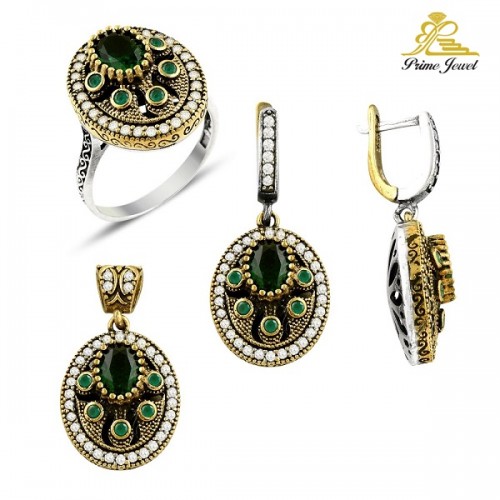 Gümüş Otantik Taşlı Set
