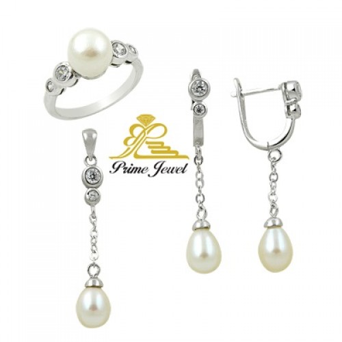 Gümüş zirkon taşlı set ( İnci)