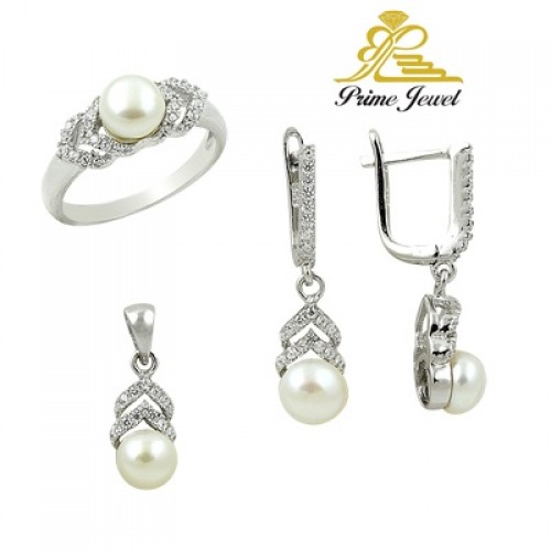 Gümüş zirkon taşlı set ( İnci)