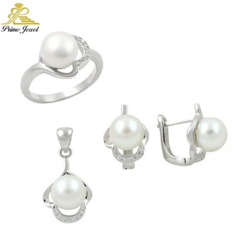 Gümüş zirkon taşlı set ( İnci)